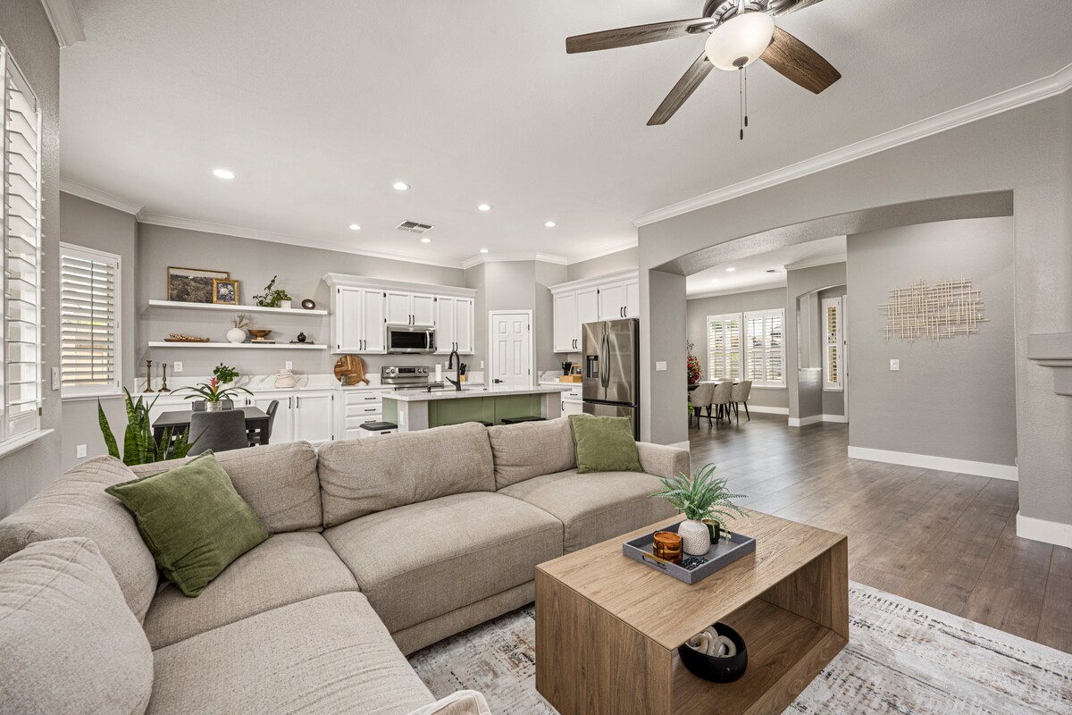 這間鄉村現代度假屋經過全面翻新和時尚裝飾,位於尤巴市安靜的Hillcrest區域。 這間2900平方英尺的3床2浴室旅居經過精心裝飾和設計,兼顧舒適和美觀。 從18英尺高的天花板到瀑布式的檯面、令人驚嘆的廚房和手工製成的穀倉門,每一處都經過精心設計。 擁有美麗的後院和大型清澈的泳池,您可以在自己的小綠洲中放鬆身心。 泳池桌和遊戲室。