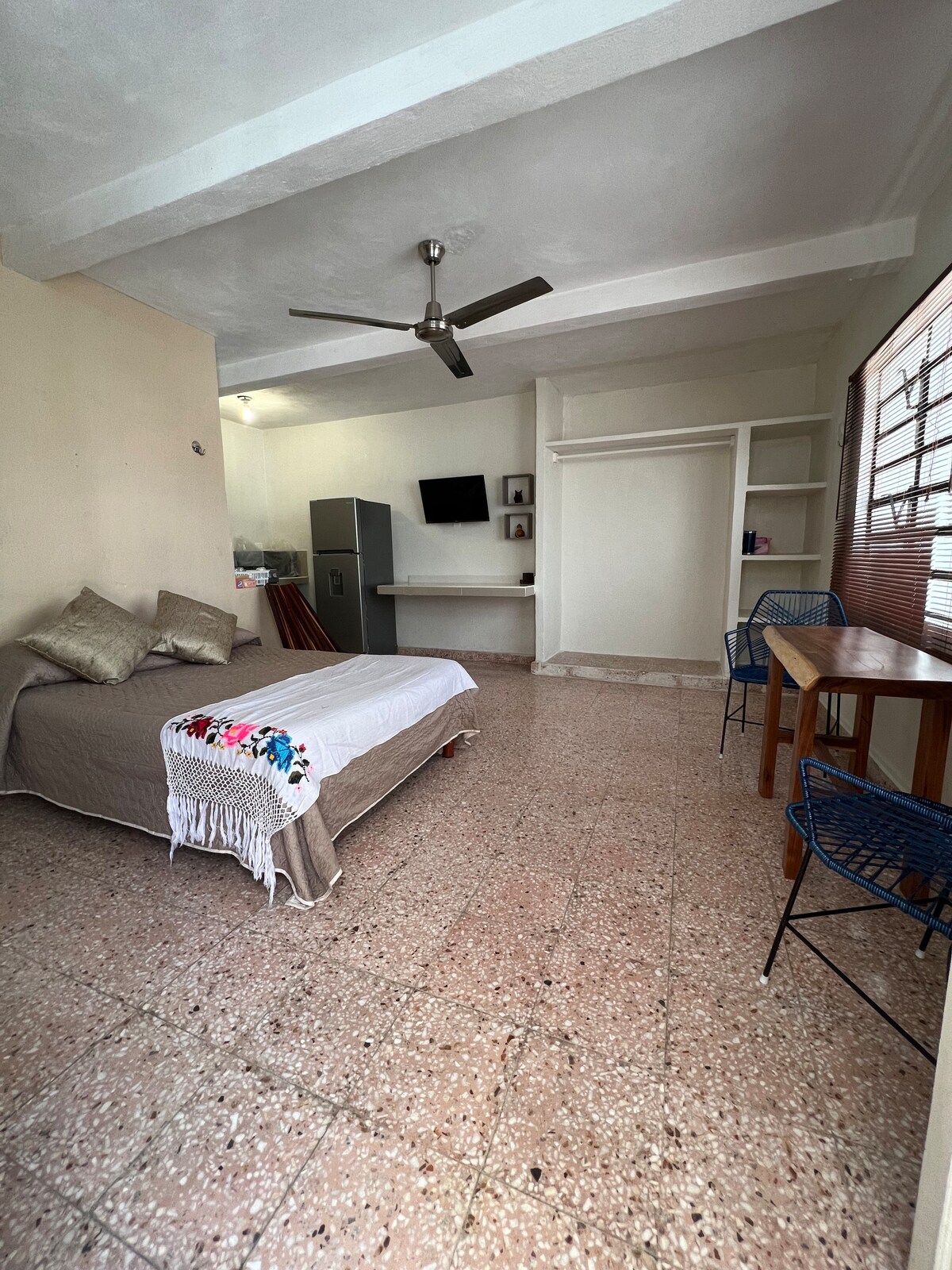 位於二樓的中心住宿,有獨立入口和獨立浴室,非常適合短期和長期住宿。配有爐子、咖啡機、冰箱、空調、可收看 Netflix 的電視、雙人床、沙發床、吊床、吊扇、網路和停車位。 距離主要市場 4 個街區,步行 15 分鐘即可抵達 ADO 巴士總站、博物館和主要公園,距離 Oxxo 和前往圖盧姆和普拉亞德爾卡門的小巴 2 個街區。