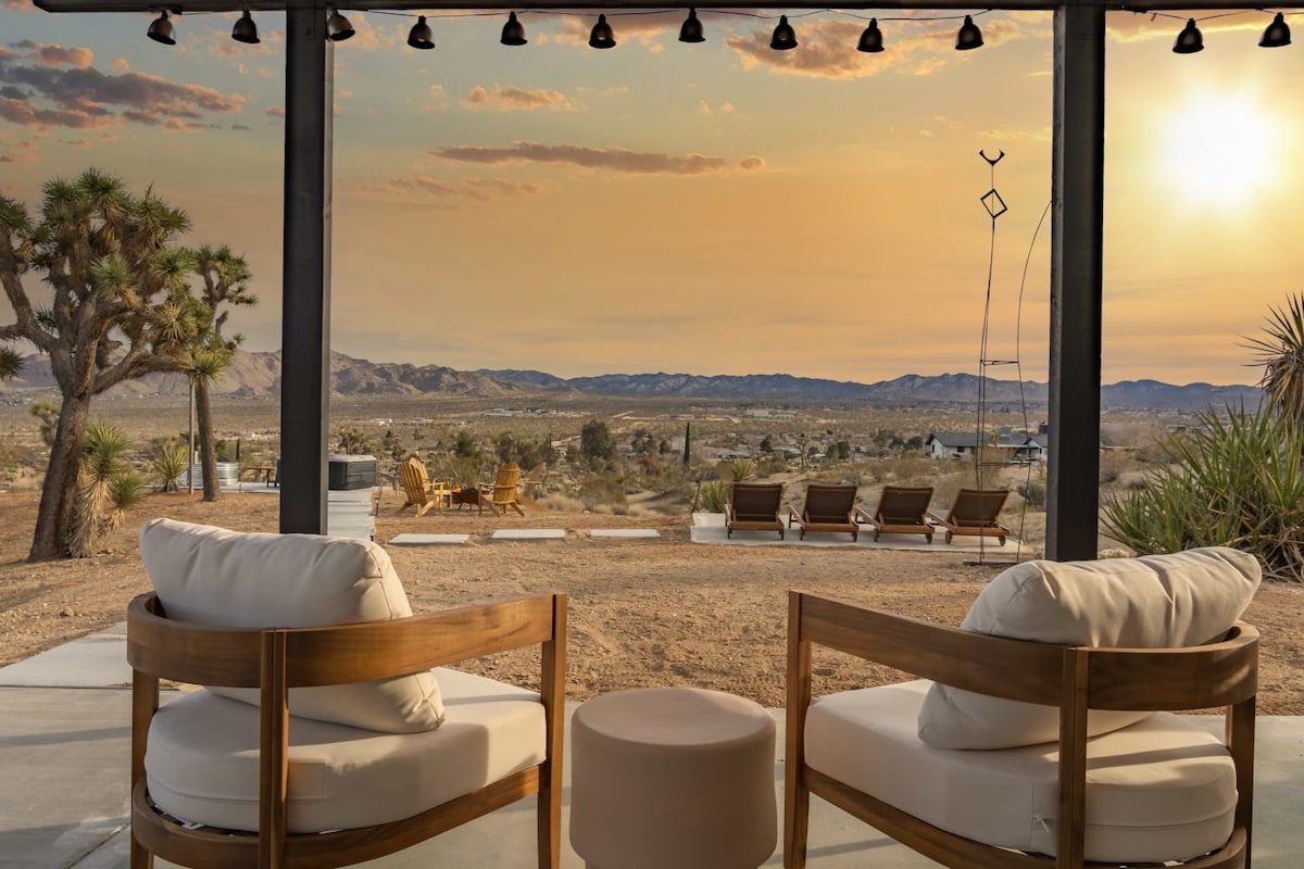 這就是你來沙漠的原因。 坐落在絲蘭谷(Yucca Valley)上方,您會發現The Edge ,我們現代時尚的2床/2浴室沙漠度假勝地。它位於2.5英畝的地段上,僻靜而古樸,但距離城鎮和約書亞樹國家公園只有幾分鐘的路程。探索當地景點,從自己的後院徒步旅行,或在豪華的熱水浴缸中度過一天,同時欣賞高沙漠的最佳景觀! ✔ 2 間特大床臥室 ✔ 全套廚房 ✔Spa 水療 ✔火坑 ✔吊床 ✔烤肉 ✔ 高速 Wi-Fi 查看下方更多!