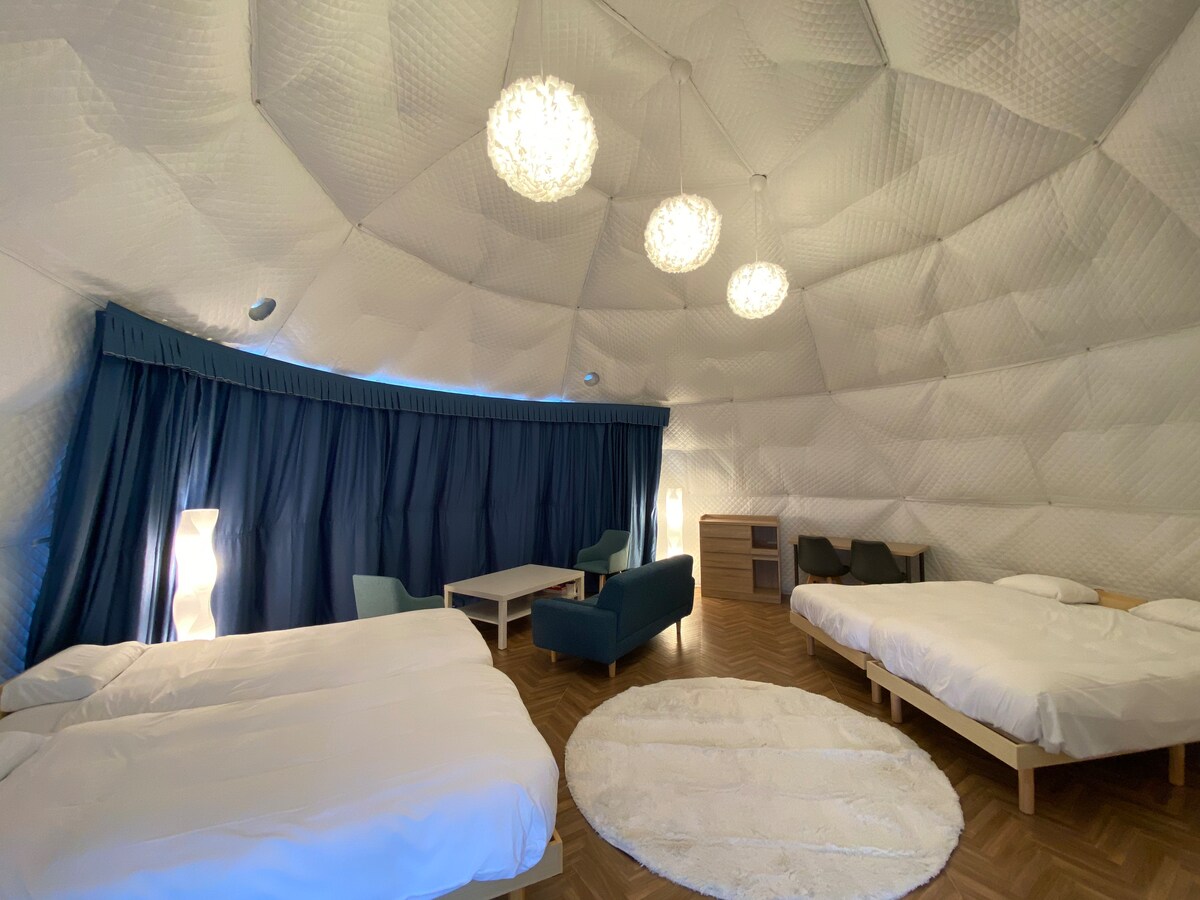 在北海道Tomamu大自然中體驗豪華露營。 當你想談談的時候,當你想放鬆身心的時候。 我們有漂亮的房間和美味的食物等您! ·超級開放式房間體驗,入住巨大的圓頂帳篷。 ·房間內優雅的晚餐和早晨體驗。 ·夜空體驗,超量星星等著您。 等。 您可以在大自然中放鬆身心。 關於★設施的溝通 房間有兩頓➀早餐和晚餐。入住免費。 ※如果沒有餐食,收到消息後,每人5,000日元可退還。 * 11月至5月底:房間內提供餐食。 * 5月下旬至10月:室外燒烤 ②關於兒童費率 7歲以下兒童入住時的設施如下。 請勿將7歲以下的兒童包括在預訂人數中,以避免收費。 住宿費:免費 膳食:不提供(即使是帶進來的) ③房間內沒有淋浴間和馬桶。 請使用公共區域。從房間步行約5分鐘即可抵達公共區域。
