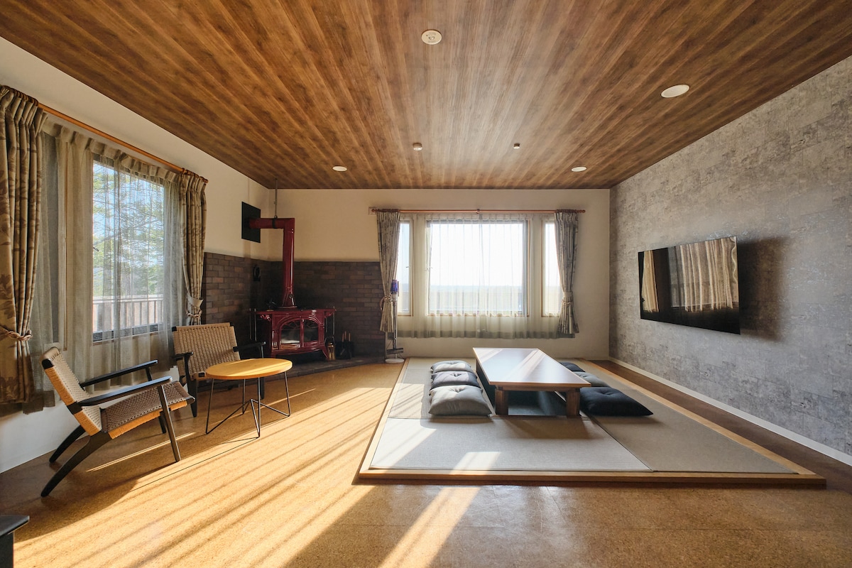 配備正宗芬蘭式桑拿和按摩浴缸的奢華住宿。 這棟兩層獨棟別墅坐落在被大自然環繞的山丘上,可一覽石狩平原的壯麗景色。 寬敞的空間最多可容納9位客人,配備舒適的地暖和空調,讓您四季都能舒適入住。 設施內設有可自助蒸氣的正宗桑拿房、冷水池和按摩浴缸等完善的休閒區域,讓您身心煥然一新。 在遠離日常喧囂的寧靜環境中,盡享奢華的水療體驗。 還配備寬敞的辦公空間,不僅適合個人工作,也非常適合團隊會議和協作辦公。 是邊工作邊長期居住、工作度假的理想選擇。 安平町位於北海道西南部,是一個自然資源豐富的城鎮,擁有廣闊的牧場和美麗的田園風光。 這裡盛產競賽馬匹,還有朝日甜瓜、奶酪和新鮮農產品。 您可以欣賞油菜花田、鐵路遺產,享受溫泉和戶外活動,前往札幌和新千歲機場的交通也十分便利。 ※目前窗戶安裝存在問題,請勿開關窗戶。如需調節室內溫度,請使用冷氣。