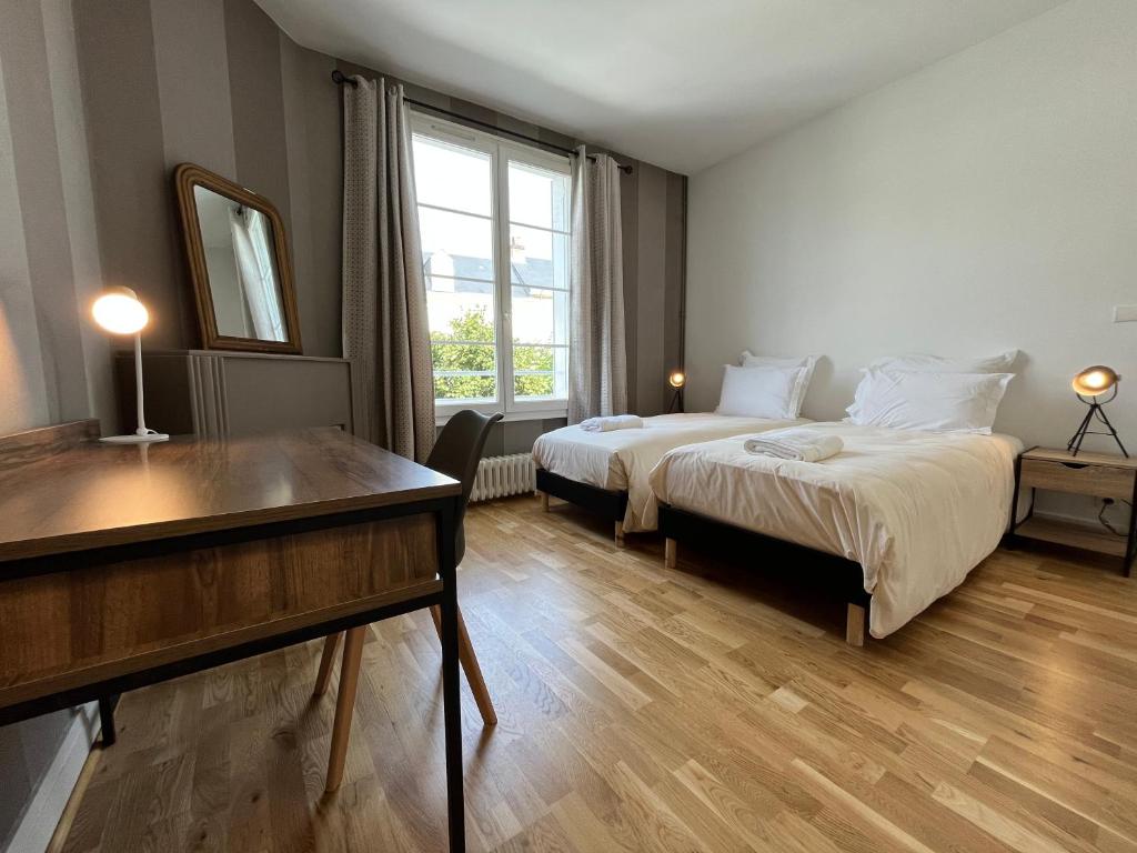 La Villa Maignan est situé dans le quartier prisé et central du Mans, dans une rue paisible. La Villa rénovée, est spacieuse et chaleureuse (environ 270 mètres carrés). La villa est sur 4 niveaux (R+3). Les chambres sont confortables (plus de 20 mètres carrés et literie hôtelière) avec au dernier étage un dortoir. Le grand salon peut être utilisé en salle de co-working. Vous bénéficiez d'une cuisine toute équipée, d'une salle de sport et d'un petit jardin paisible avec du mobilier extérieur.