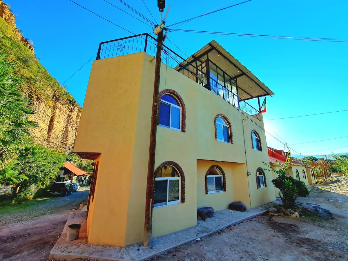 No querrás irte de este lugar tan único y encantador. Es un hotel ubicado en Los Berros, nombre De Dios, Durango, México. Rodeado de los manantiales más bonitos de la región, hermosas vistas y un ambiente muy relajante. Se encuentra a 5 min de la cascada de el saltito, a tan sólo 3 minutos de la Constancia en donde también se encuentran vistas hermosas. Es posible observar las sequías con muchos árboles frutales adornando y haciendo más mágica la experiencia.