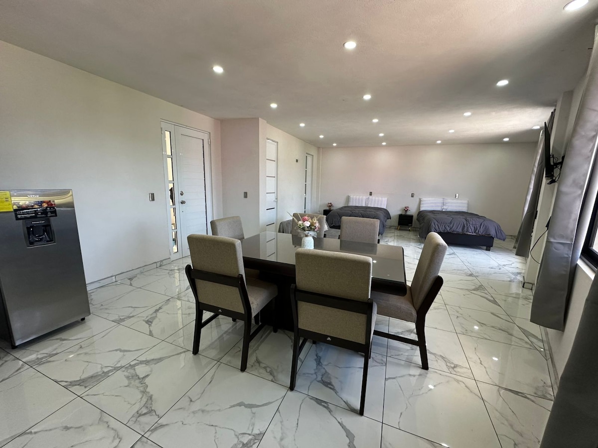入住非常舒適的公寓,非常適合小家庭或尋找寧靜的旅客。 它位於上層,地理位置優越:步行5分鐘即可抵達Mirador de Cristal和Vitromurales ,步行10分鐘即可抵達市政Zócalo。 旅居內有兩輛車的私人泊車位,以及所有必要的服務,讓您享受舒適無憂的住宿。 在探索薩卡特蘭後,你一定會喜歡在這裡放鬆!
