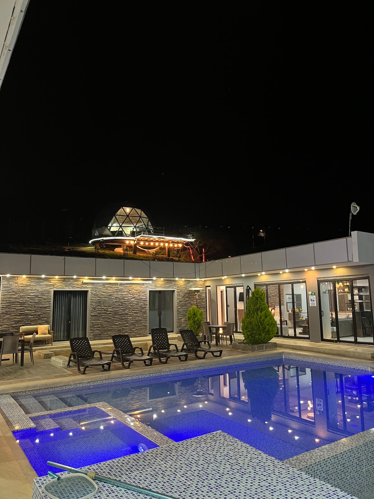 VIA LACTEA GLAMPING disfrutarás del camping de lujo con un hermoso estanque con flores loto y peces koi, la comodidades que disfrutaras del domo es baño privado, terraza con jacuzzi y una hamaca de exclusivo uso de Ustedes; la estructura y el diseño ha sido por expertos, ahora puedes disfrutar de un espacio único en Vilcabamba Podemos preparar paquetes de acuerdo a tu ocasión especial Podrás visitar los jardines de la Villa y alrededores, además de personal de servicio las 24 horas del día.
