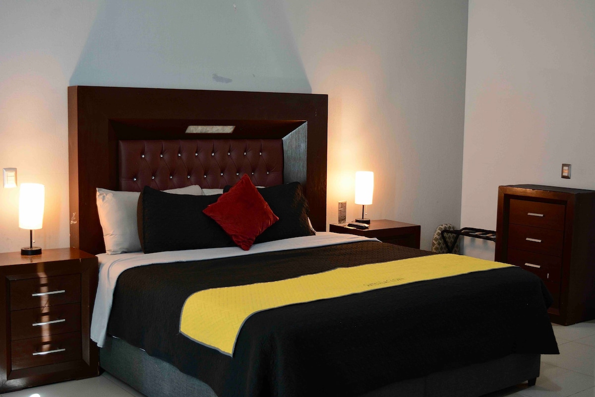 歡迎來到我們位於阿瓜斯卡連特斯市中心的寧靜家庭度假勝地! 我們舒適的度假勝地距離體育場7分鐘路程,非常適合體育迷、博客和家庭。 我們距離著名的聖馬可國家博覽會( San Marco National Fair )僅10分鐘車程,靠近Bodega Aurora ,方便購物,周圍有正宗的墨西哥餐廳。 無論您是來這裡參加博覽會、比賽還是放鬆身心,我們的房源都能為您提供舒適和便利的住宿體驗。