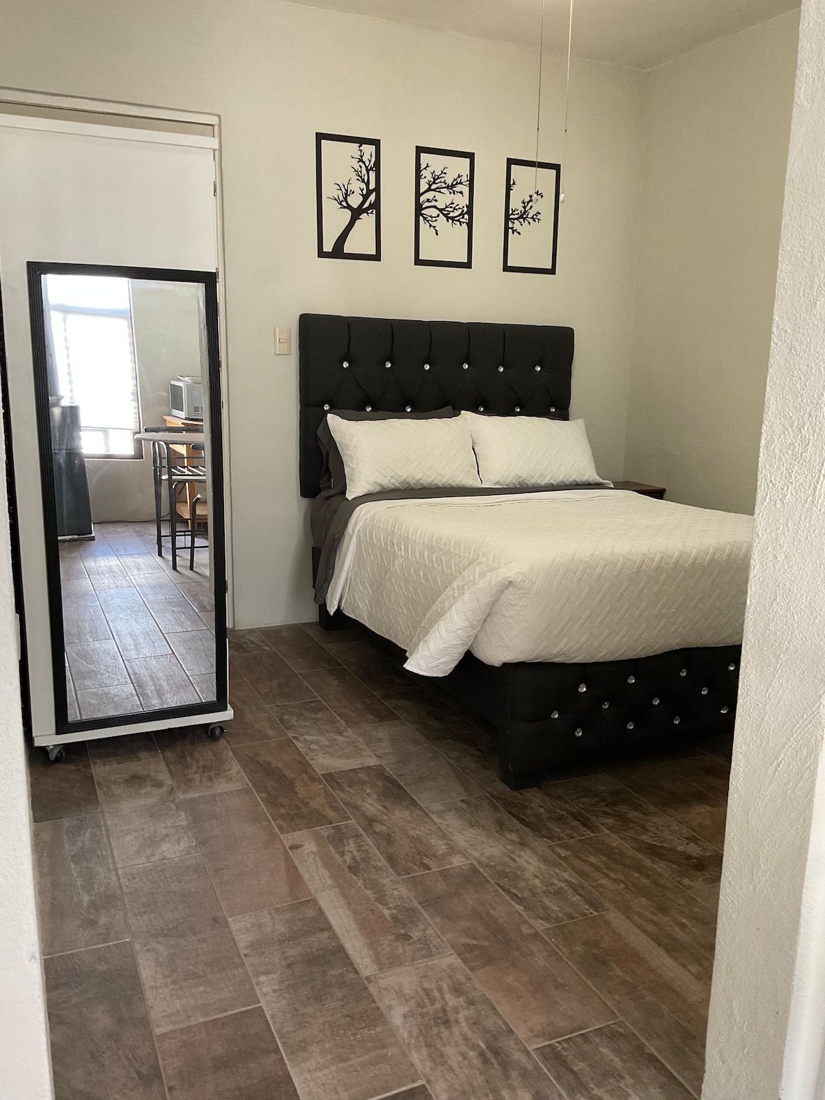 This is a lovely loft for two, located just a few steps from the Historic Center of San Luis Potosí. It has a private entrance and everything you need: a fully equipped kitchen, full bathroom, WiFi, TV screen, a small private patio with a hammock, amenities, excellent lighting — and plenty of inspiration!