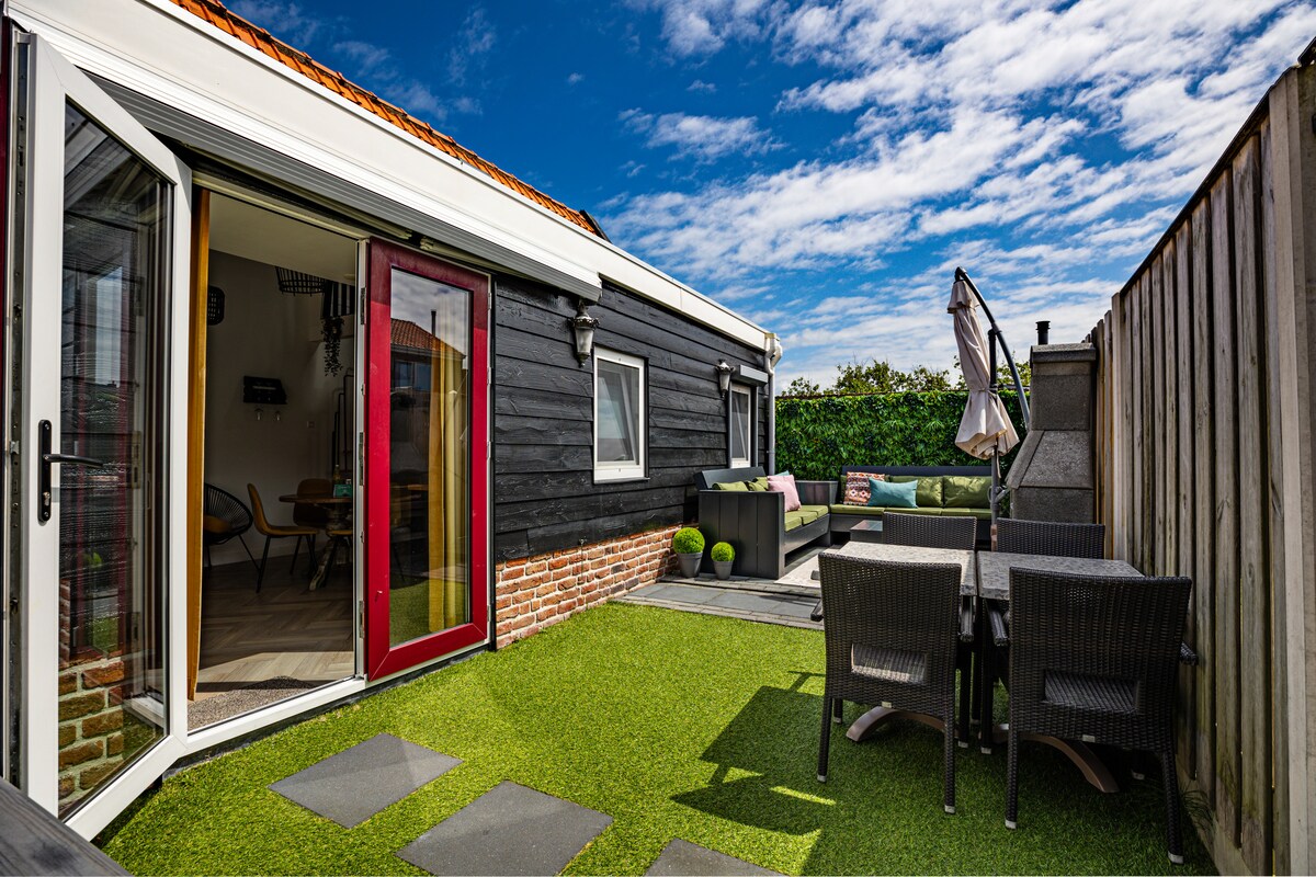 在我們的大花園裡有一個可愛的小屋,完全屬於您。從花園可以看到燈塔。 禁止攜帶寵物。 2 張舒適的彈簧床、私人淋浴間、廁所、電視、WiFi、冰箱、咖啡/茶和微波爐。您可以在住宿期間免費停車,或在小屋充電(自帶充電器) 享受海灘漫步到弗利辛恩,美麗的自行車道或歷史悠久的米德爾堡一日遊!