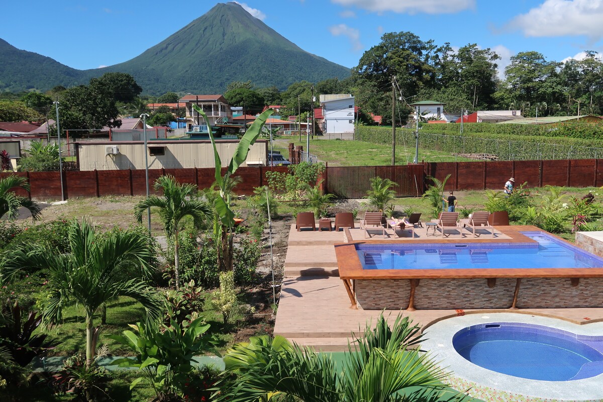 這是一個安靜、現代化的住宿,四周環繞著大自然,並可俯瞰火山景。您可以與伴侶一起享受,也可以將其作為遠離日常生活的地方,也適合您安靜地遠程工作。 從房間可欣賞阿雷納爾火山的特殊景觀,並在露臺上享受按摩浴缸,如果您夠幸運,還可以看到樹懶。 距離拉福圖納市中心僅400公尺,靠近溫泉、旅遊景點和餐廳。