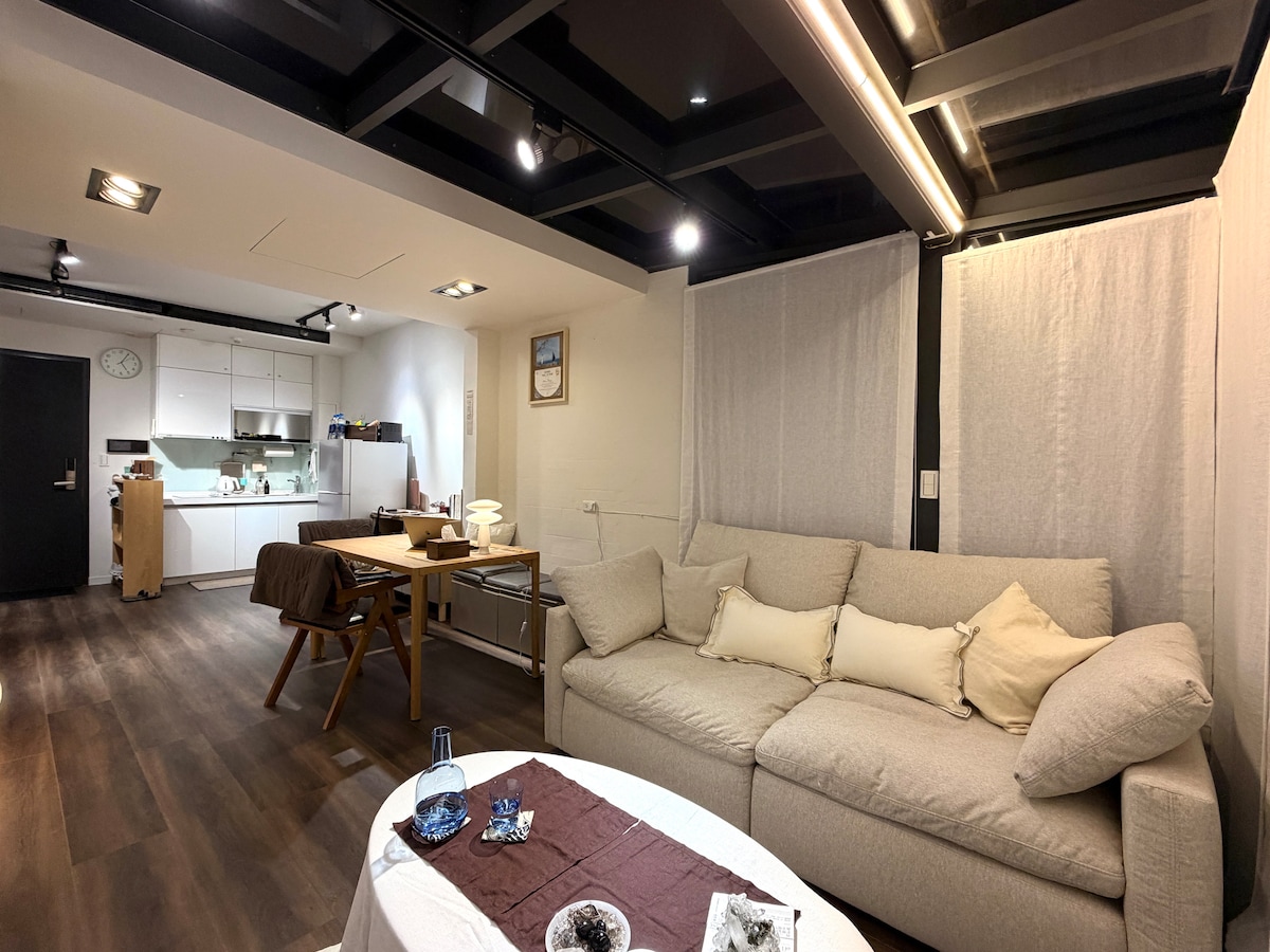 台北市中心特色住宿,德國與台灣團隊合作打造,結合當地文化與風情,邀您一起來體驗! ⭐房源特色: ①獨特且強調建築特色的空間設計,並提供全室手工訂製家具 ②22坪的露臺空間,擁有私人前/後院(附設手工訂製休閒椅、精選花草植栽)。 ③非常適合好友團體入住。 ⭐提供設備: 全套廚房配置/4K投影機/apple Tv /Dyson吹風機 /免費WIFI,另外如洗衣機、電子門鎖等設備。 ⭐位置交通: 位於台北精華區的靜巷,附近生活機能豐富,環繞公園、道地餐廳咖啡廳與711並且緊鄰微風廣場 百貨 鄰近兩條捷運線與多條公車路線 *10分鐘可到達台北各個景點* -走路約10分鐘可到南京復興捷運站/忠孝復興站/台北小巨蛋站 -大安路小吃街(5分鐘)/遼寧街夜市(走路9分鐘)/饒河街夜市(公車20分.捷運) -走出巷弄2分鐘有經典酒吧秘密客 ❤️氣球場佈優惠中(有需要可以事先通知~) ⭐我們提供貼心管家服務,確保您的住宿體驗。 **歡迎參考我的房東在地指南,都是我常去的地方,邀請你體驗在地人文化及生活**