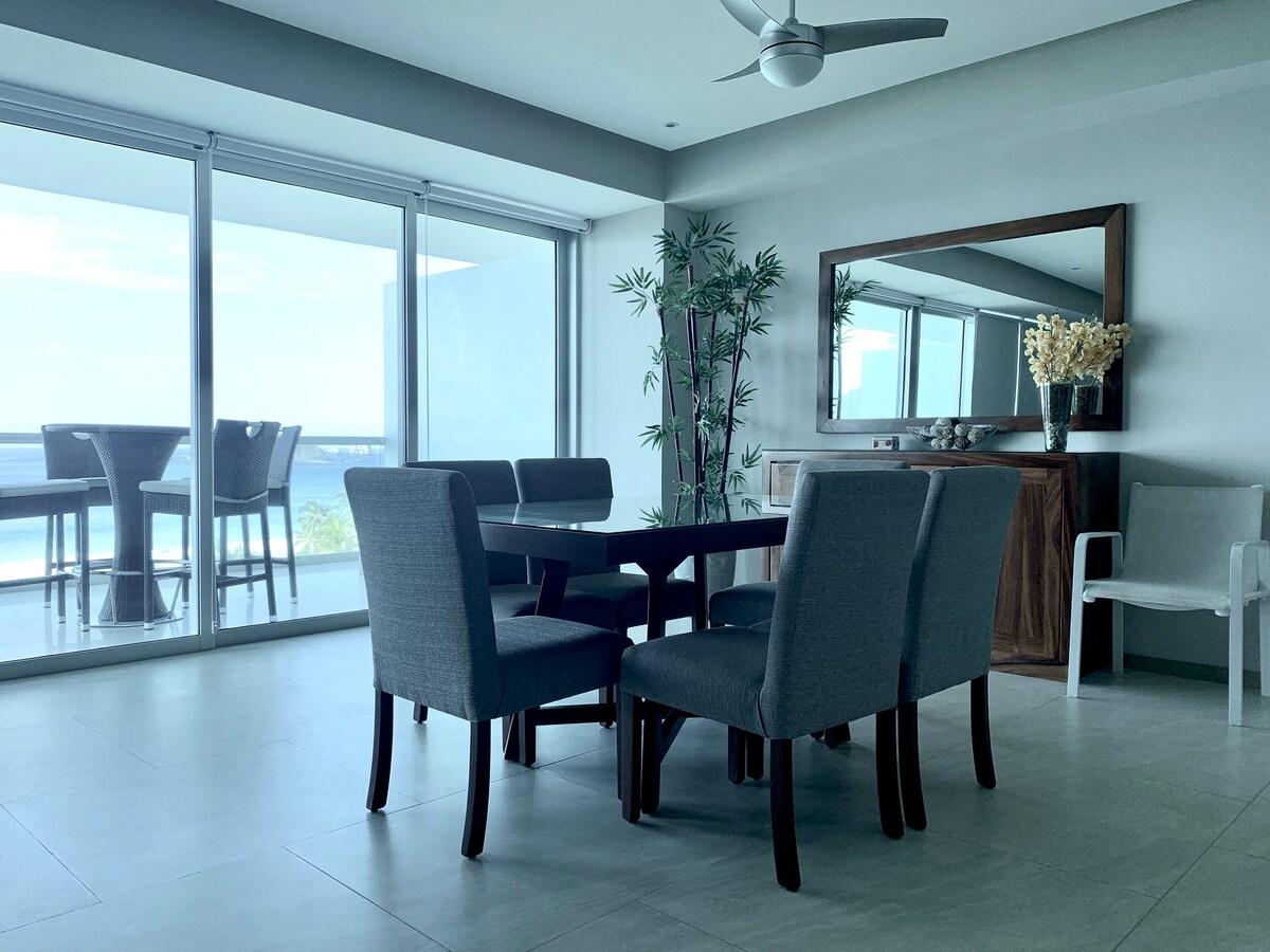 全新美麗舒適的公寓,就在Ixtapa遊艇碼頭附近的前海灘上。 非常適合家庭入住,設備齊全的廚房和泳池旁的餐廳酒吧。 非常適合週末和長期住宿,清潔服務和烹飪服務是可選的。 大樓內有免費停車位,設備齊全的健身房。