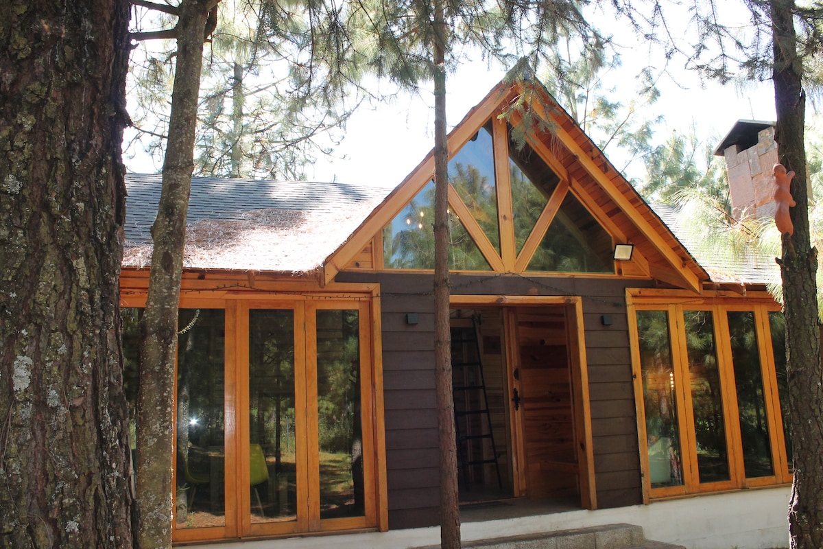 Hermosa cabaña ubicada en un condominio cerrado y silencioso donde desconectarás por completo, ubicada a solo 10 minutos de laguna Larga en los azufres Michoacán, ideal para amantes de la naturaleza y el silencio. Camina entre árboles, toma un baño caliente, relájate junto a la chimenea y visita el campamento Laguna larga, donde puedes subirte a una lancha, comer, disfrutar de su alberca de agua termal natural y mucho más. No tenemos televisiones ni WIFI, pero sí un paisaje bellísimo.