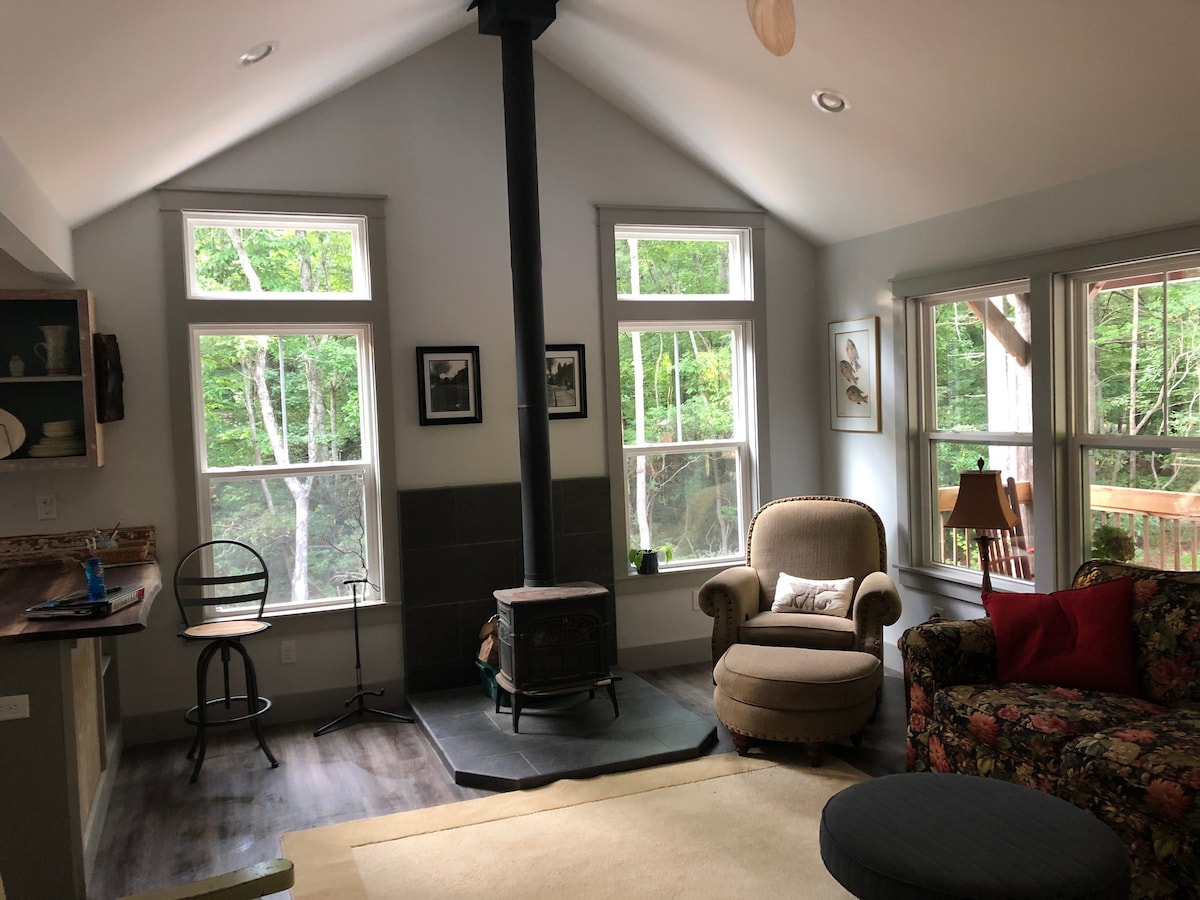 在我們現代風格的A型小屋中醒來,欣賞山景,是情侶、家庭或兩對情侶的安靜度假勝地。 在餐桌旁欣賞窗外的美景,在陽光明媚的樹頂平台上放鬆身心,或在探索藍嶺山(Blue Ridge Mountains)一整天後,在燃木爐旁放鬆身心。 The Tree House由我們翻新,擁有工業鄉村風情,位於亨德森維爾、Flat Rock、杜邦州立森林、布雷弗德、阿什維爾和藍嶺公園大道附近。快速Starlink WiFi。