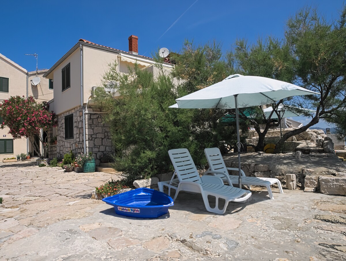 獨立房屋,有2間公寓,旁邊有自己的土地,包括一個小樹林。房子位於可俯瞰科納提國家公園。附近有網球場,可以乘船前往科納提國家公園(Kornati National Park),或開車前往克爾卡國家公園(Krka National Park)。2 間臥室、1 間浴室、帶廚房的客廳、戶外淋浴間。