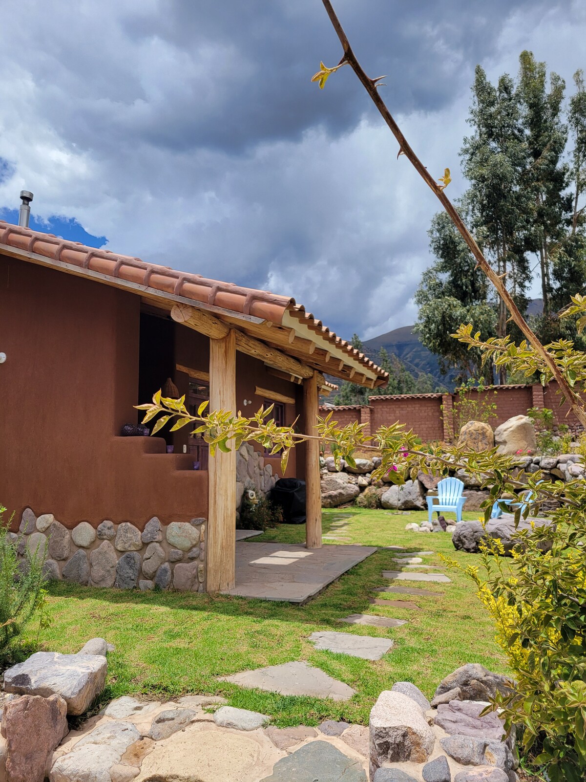 La mejor vista de todo el Valle Sagrado hacia los glaciares Andinos! Si deseas paz, tranquilidad y descansar lejos del bullicio del Valle Sagrado pero al mismo tiempo poder visitar todos los atractivos de la zona, esta casa es tu paraíso. Nuestra casa está 100% ecológica, muy bien ubicada a pocos minutos de Maras y Urubamba y en un sitio muy tranquilo para disfrutar de la naturaleza. La casa recolecta el agua de la lluvia y se mantiene caliente de forma natural. Está construida naturalmente.
