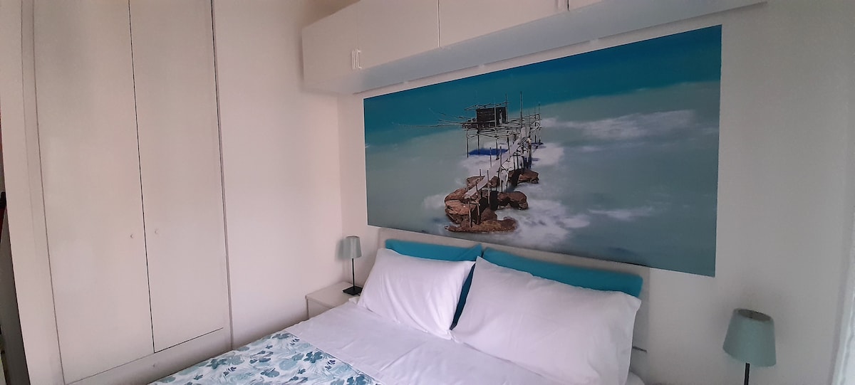 Independent flat in the heart of Ortona with double bed, private bathroom, living room, sea-view terraces and free parking. Only two minutes walking to Basilica di San Tommaso, Castello Aragonese, Passeggiata Orientale, Corso Vittorio Emanuele, Teatro Vittoria, pedestrian bicycle path on Costa dei Trabocchi. In few minutes you can get to the best beaches Lido Riccio,Lido Saraceni, natural shore Ripari di Giobbe and Acquabella, Cimitero Canadese, the Harbor of the city and the turistic pier.