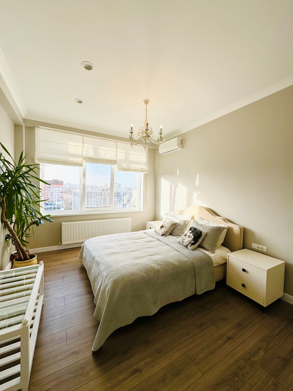 非常適合家庭入住,寬敞、現代化,全景窗戶,位於新街區,靠近市中心(乘坐出租車10分鐘, 5歐元)從機場出發。地下停車場-14歐元 地理位置優越,可快速前往公共交通工具,距離植物園、超市、藥店、餐廳、銀行、動物園200米。 它提供您愉快住宿所需的一切、設備齊全的廚房、2臺配備Netflix的智慧電視、Wi-Fi。 從這個最佳位置體驗基希尼奧最精彩的一面