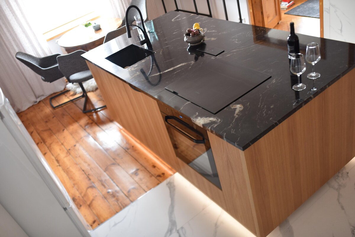 該單位位於市中心翻修過的歷史悠久的連棟房屋中,靠近火車站和巴士站。 裝潢時尚,適合大量房客入住。 可提供額外的牀位安排。 設備齊全,可使用健身房。 適合小型或大型團體。 靠近老城區、雜貨店和餐廳。 公寓房屋上鎖的庭院內的停車位。 從後院進入單位。 請提前告訴我您是否願意使用健身房。