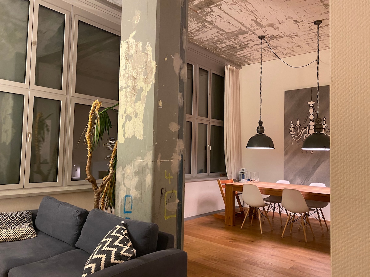 Beautiful, open plan luxury apartment, in a newly reconstructed building that once acted as a showroom, warehouse and repair site for the legendary Citroen model DS - the goddess La Déesse. The apartment is fully fitted and has everything you need to have a relaxed stay in Zurich. It is easy to reach by public transport, with two tram and bus stops only a 5 minute walk away. For those coming by car, a dedicated parking spot is available in the garage.