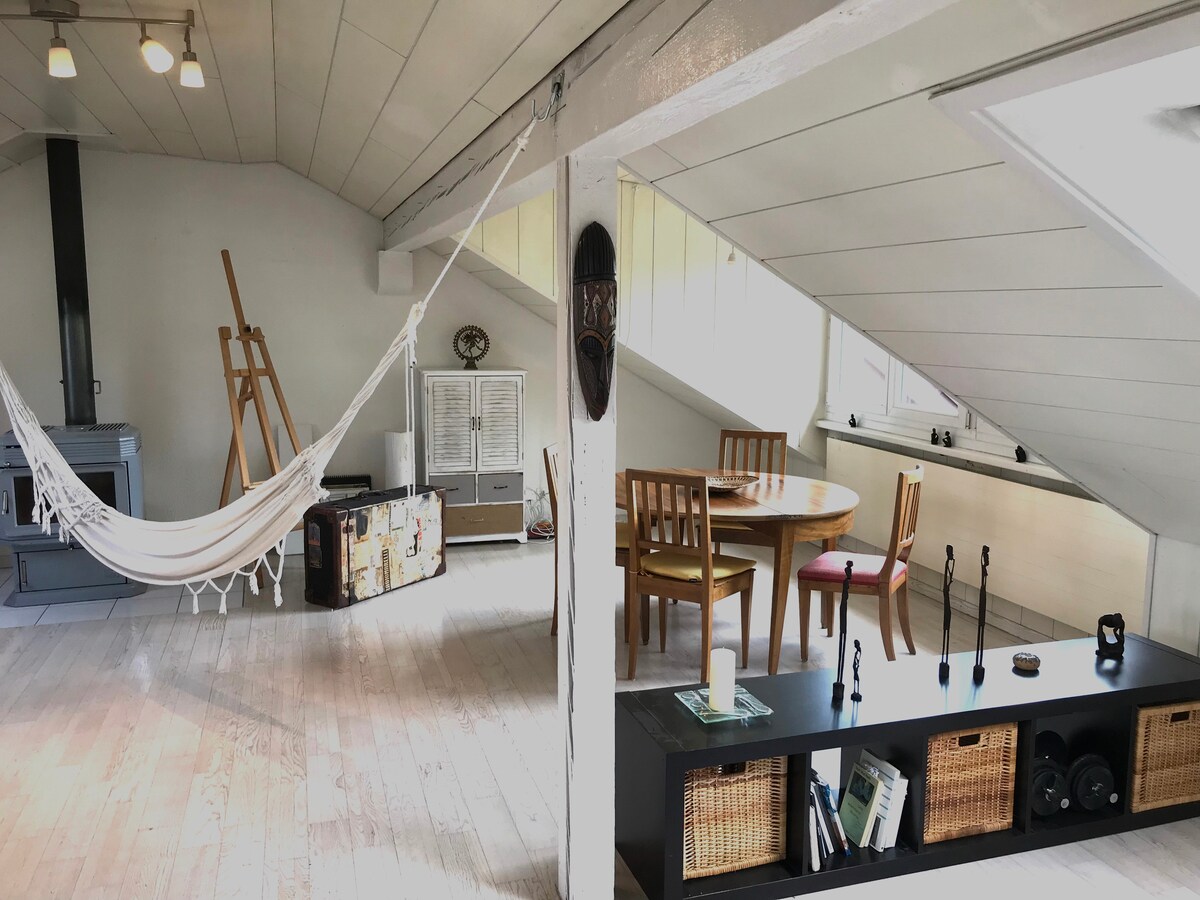 Zurich loft close to a beautiful park and forest nevertheless close to town. Very well designed with mahogany hardwood floor, you will feel luxury and it is also very cosy. The loft comes fully furnished with everything you need for a comfortable and worry free stay. It’s on the top floor A few minutes with public transport to the center. Shops are nearby. The house is a classic Zurich four story house All districts of Zurich are easily accessible. The house has a little green backyards.